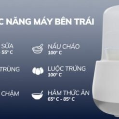 - Máy thứ nhất (bên trái – L): Tiệt trùng/Hâm sữa/Hầm cháo chậm