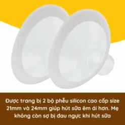 – Hút thoải mái: Đi kèm phễu hút sữa mềm Medela PersonalFit Flex với vành mềm và hình ovan giúp mẹ cảm giác thoải mái hơn, vừa vặn hơn khi sử dụng máy hút sữa Medela Pump Maxflow.
