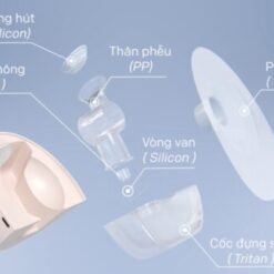 - Cung cấp 2 đầu phễu để cho mẹ lựa chọn tuỳ sở thích và kích cỡ : phễu hút bằng silicone siêu mềm (24mm) với hai đầu phễu silicone bổ trợ 21mm và 17 mm để lắp bổ sung.